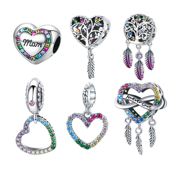 Cầu Vồng Pha Lê 925 Sterling Silver Rắn Vô Hạn Tình Yêu Tim Dream Catcher Charm Cho Ban Đầu Pan Bracelet Phụ Nữ DIY Jewelry